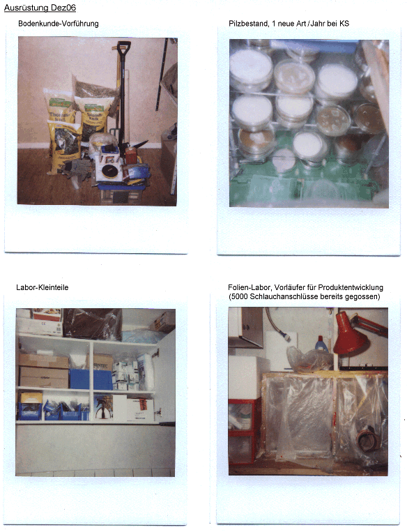 Das 1.Foto zeigt die Ausrüstung für Bodenkunde-Vorführung (Hügelkuppe, s.Versuchsbeschrei- bung). Gesamtgewicht Ausrüstung, Mofa und Fahrer 300kg. Vorne Kiste mit Lehrbüchern, Fotos, CD, Papiere als Bodenkunde-Nachweis (statt Diplom). Ein Bodenkunde-Studium ist halb sinnlos ohne eigenes Land. Die Ausrüstung wurde im November gekauft, statt Wintersachen (Mikrowelle, Brille, Schuhe etc), aber der Dippel hat blödgemacht. Gibt’s dazu nicht ein Volkslied wenn ich mich richtig erinnere: Wir sind die Moorsoldaten und schlagen mit dem Spaten den Beamten tot oder so ähnlich