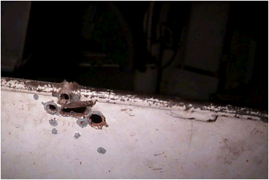 12. Einschlag 5cm tief an gegenüberliegender Panzerwand |