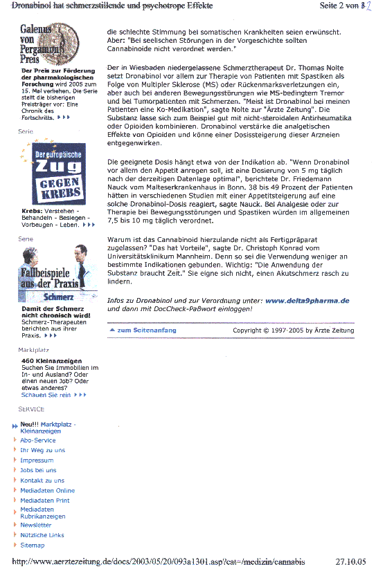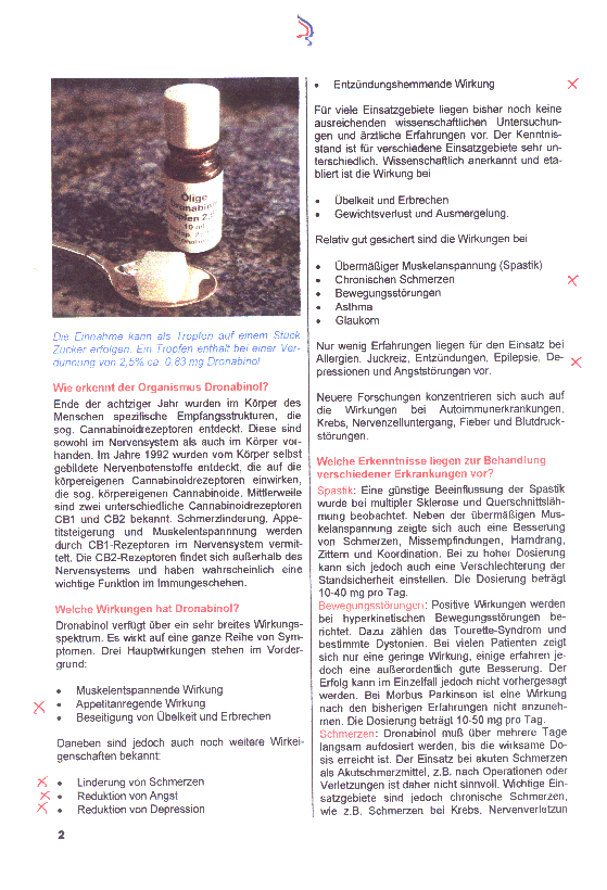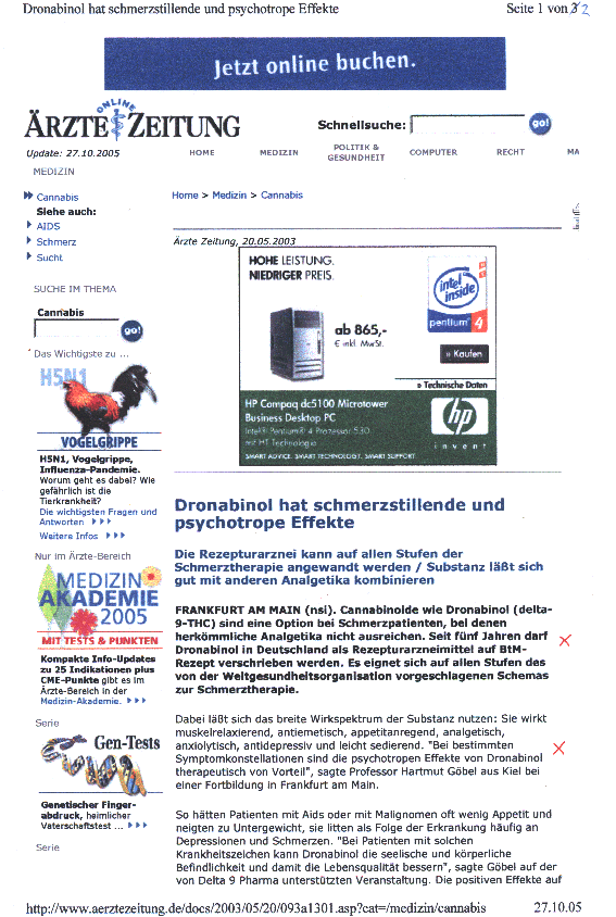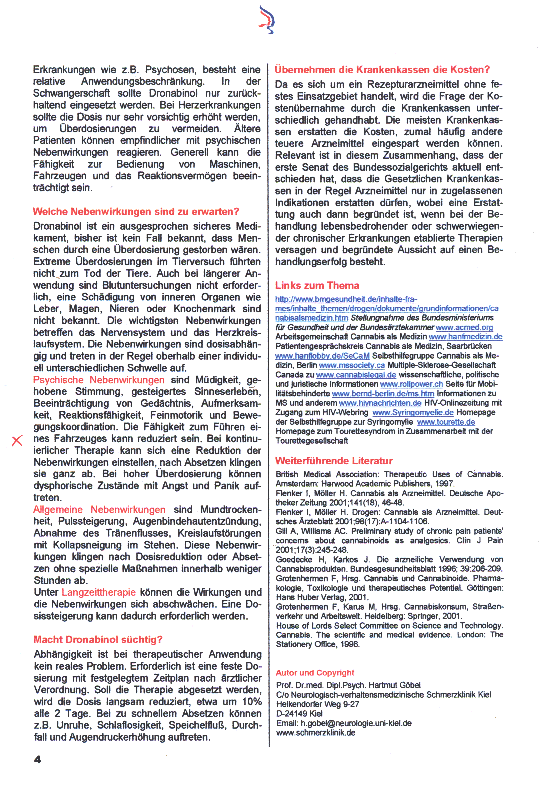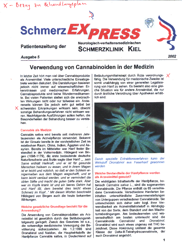 Thomas Gossmann Sehr geehrter Dr. Datenschutz , Behandlungsplan mit dem Wirkstoff "Dronabinol", Präparat Marinol 2 Anlagen Indikationen I1 chronische Schmerzen rechtes Daumengelenk (Benettbruch 1986). Der Bruch ist an einer günstigen Stelle, so dass Schmerzen nicht bei allen Belastungen auftreten. I2 Metallsplitter in Hand: Diese lassen sich kaum operativ entfernen sondern "wachsen" heraus anlässlich Belastungen und Prellungen. Dieses durch kleine Operationen zu unterstützen bringt kaum Vorteile gegenüber der Heimwerkermethode. Den wiederkehrenden geringfügigen Belastungen durch Schmerzen und Arbeitsausfälle wirkt die Behandlung entgegen. I3 Zahnwurzelschäden - entzündungshemmende Wirkung, angezeigt bis zum Ende der langwierigen zahnärztlichen Behandlung. Für gelegentliche akute Schmerzen oder Schwellungen hat sich der von Ihnen verschriebene Salbeitee bewährt, die Antibiotika waren anscheinend wirkungslos. I4 Depression: materielle Depression, bedingt durch erheblichen schädlichen Einfluss von Behörden auf mein Unternehmen u.Forschung. Bis zu 80% meiner Zeit gehen durch Behörden verloren, dadurch können Lähmungsgefühle enstehen und: Ein Nebeneffekt der Verschreibung ist wie gesagt, dass bei mir früher evtl. gefundene Wirkstoffe oder Wirkstoffreste nicht in Zusammenhang mit möglichem verantwortungslosen Fahren gebracht werden können. Zumal die Blutproben anlässlich gelegentlicher geringfügiger KFZ-Auffälligkeiten negativ waren. Nach Aussagen der Führerscheinstelle waren Wirkstoffe nie ein Grund für Führerscheinentzug, sondern nur Anlass zu psychologischen Untersuchungen, die dann einen Führerscheinentzug wegen Beamtenhass ergaben. Die schriftliche Begründung war dann natürlich feiner ausgedrückt, mit "Borderline" und "Charakter". Die psychologische Aktenlage baute auf folgendem auf: Bafög-Verlängerung wg. "Stress beim Studium" (geburtenstarke Jahrgänge), Freisprüche wg. Hanfanbau, gerichtspsychologisches Gutachten zur Einsichtsfähigkeit (nach Angaben des Gutachters ergab sich daraus keine Fahrproblematik, die Führerscheinstelle war jedoch gegenteiliger Ansicht und ordnete ein weiteres Gutachten an, welches dann plötzlich negativ war und zum Führerscheinentzug führte, worauf ich mir kein Anwalt leisten konnte ), sowie einige geringfügige Strafbefehle wg. Überführungsfahrten ohne Versicherungsschutz u.ä.. Zuletzt soll ich mit dem Mofa eine Beule in einen fahrenden BMW gefahren haben, dafür gabs einen Freispruch und 3 1/2 Jahre Führerscheinentzug. Der BMW-Fahrer hat selbst vor Gericht zugegeben, dass er "etwas ausgerastet ist", außerdem wurde schnell die aufgemalte Sperrfläche halbiert, über die er gerast war, so dass er vor Gericht besser dastand. Dieselbe Geschichte, incl. Sperrflächenhalbierung, hat vor ca.12 Jahren schon mal stattgefunden, an genau derselben Stelle. Solche Sachen erlebe ich jeden Monat, soviele Anwälte kann ich mir garnicht leisten. Dabei fällt mir ein Zitat des Nietzsche ein, "der Staat ist ein tollwütiges Biest, das man schnell und gründlich totschlagen soll." Darüber mache ich gerade eine Dr.arbeit, bezügl.der praktischen Umsetzung (Stichworte: Volks-Selbstzählung ; Multiplikatoreffekte mit Arbeitslosen und Wissenschaftlern). Das zu verschreibende Präparat wird in D als Apothekerzubereitung verkauft. Sollte kein Beipackzettel dabei sein, muss das engl. Fertigpräparat verschrieben werden. Ein Medikament ohne ausführlichen Beipackzettel kann ich selbstverständlich nicht ernst nehmen. Ironischerweise kann ich das Medikament auch selbst herstellen, zu einem Zehntel des Preises (auch in kleineren Tranchen), anhand einer jahrelangen Ausbildung. Dazu musste ich 3x in 6 Jahren durch einen Prozess, Freispruch da es sich um Forschung handelt und der Verkauf wenn überhaupt nur geringfügig war. Ich muss nur noch das fertige Destillat an der Uni durch eine Säule jagen (habe ich nicht zuhause), dann hat es die gleiche Qualität wie das sauteure Handelsmaterial. Genehmigung beim BGesAmt in Arbeit, wird aber ein harter Brocken, billig nicht erwünscht. Vgl. oben, Staatsbiest und Freunde. Ein weiteres Präparat habe ich schon durch, kann ich Ihnen zeigen incl. Schreiben vom Ministerium. Konkurrenten werden dadurch abgeschreckt, dass ich mich noch in einer rechtlichen Grauzone bewege, ich bin für Schäden bei der Anwendung z.T. haftbar. Mein Verkauf an Ärzte, Psychologen und Patienten liegt deshalb z.Zt. noch unter 2000 €/Monat, mit mäßiger Gewinnspanne, so dass noch die (billige) Wohnung vom Arbeitsamt bezahlt wird. Für den Marinol-Behandlungsplan genügen vermutlich ein paar Beratungen, 100 € oder so, plus Rezept, falls kein weiterer Aufwand nötig ist, zumal wenn Sie das Thema selbst interessiert, für andere Patienten. Ich würde dann wiederholt kurz vorsprechen, mit Vorlage des Einnahmeprotokolls, zwecks Fragen etc.. Ich komme, vermutlich nachmittags, kurzfristig wieder in die Praxis, da ich meistens Nachtschicht arbeite (z.B. Konzepte wie dieses ausarbeiten). Mit freundl. Grüßen |